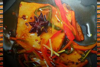 scaldate l'olio di semi di arachide e l'olio di sesamo in un wok oppure in una grande padella e friggete le fette di tofu e mettetelo da parte nello stesso olio friggete per 2 minuti il peperone