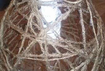 Mettete il filo del lampadario con relativa lampadina nell'apertura, prendete un pezzettino dello spago e chiudete in modo che la lampadina non possa uscire; basta un semplice fiocco in modo che sia facile eventualmente cambiare la lampadina!