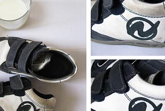 Ho preso qualche batuffolo di cotone, del latte e... sfregando lo sporco sparisce! Chiaramente se ci sono graffi nella pelle non tornano bianchi... ma lo sporco viene via facilmete.