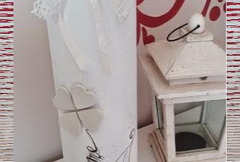 Ho usato: nastrino di raso panna a pois bianchi, passamaneria di filo, nastrino a cuoricini di rado, cuori di das fatti da me, matite colorate.Adesso aspetto che mi venga l'idea su come riempirlo ;P