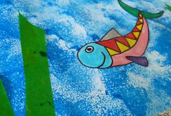 Siamo partiti da un foglio bianco che abbiamo decorato utilizzando delle spugne per dare un tocco di originalità all’azzurro del mare; con la carta velina abbiamo realizzato delle strisce di diversa lunghezza per poter creare le alghe tra le quali nuoteranno i nostri pesci. Prima ho disegnato la sagoma su un foglio per poi colorarli, tagliarli ed incollarli nello sfondo; per finire abbiamo decorato incollando qualche sasso così da dare l’idea del fondale marino. Direi che è perfetto e… ora possiamo inventarci una storia da raccontare o immaginare di nuotare in queste splendide acque.