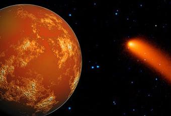 Rappresentazione artistica di un ipotetico impatto su Marte da parte della cometa Siding Spring. Immagine disponibile su MediaInaf.