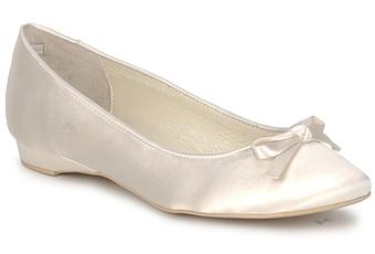 Esclusa categoricamente la possibilità che finisca per sfoggiare un paio di infradito o che, peggio ancora, possa rinunciare alle scarpe e danzare a piedi nudi (come qualcuno mi ha prontamente consigliato), la mia attenzione si è concentrata su un paio di ballerine in raso avorio di Menbur. Un paio di scarpe lezioso e romantico, assistito da un piccolo tacco da 1cm che di certo si pone come grande sollievo per chi, come me, non è abituata a calzarne di estremamente flat.