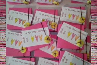 Scatole portaconfetti, menu e segnaposti coordinati fucsia, realizzati dalla nostra cliente Heleanna...