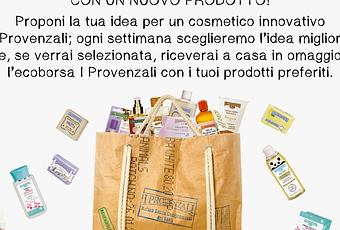 Proponi la tua idea per un cosmetico innovativo; ogni settimana a chi avrà avuto l’idea migliore invieremo in omaggio l'ecoborsa I Provenzali con i migliori prodotti.