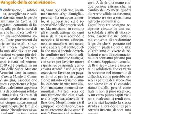 Condivisione, sobrietà, accoglienza e solidarietà: sono le parole che animano “La Collina dei Barbagianni”, comunità di famiglie alla periferia nord di Roma che hanno scelto di vivere l’esperienza dei condomini solidali. Famiglie che, tutte provenienti da esperienze ecclesiali, si sono messe in gioco cercando uno stile di vita diverso, in cui le relazioni valgono più delle cose, libere dai condizionamenti di una società puntata sull’avere più che sull’essere.La Collina dei Barbagianni è nata nel settembre 2010 ed è ospitata in un edificio delle Suore Maestre Pie Venerini data in comodato d’uso a Mondo di Comunità e Famiglia, l’associazione cui questa esperienza è legata e alla quale fanno capo una ventina di condomini solidali in tutta Italia. Si tratta di un antico casale ristrutturato, con 5 appartamenti che ospitano 4 famiglie e un single (che aderisce ai valori fondanti); in tutto 9 adulti (età compresa tra 30 e 50 anni) e 9 bambini, cui si aggiunge un ragazzo della Guinea-Conakry, rifugiato, ospite di una delle famiglie dal 2012. “Tutto nasce attorno alla famiglia - o a una persona con un desiderio di famiglia – che, riconoscendo di non poter bastare a se stessa, per realizzarsi in pienezza decide di vivere accanto ad altri in modo solidale e accogliente”, spiega Beatrice Lombardo, responsabile della comunità, con una esperienza scout alle spalle. È sposata con Andrea Bernardini. Vivono qui con i tre figli: Giovanni, 7 anni, Anna, 5, e Federico, un anno e mezzo. Il principio cardine non è la fusione delle famiglie ma quello del vicinato solidale, che si basa sulla fiducia reciproca, non sulle norme. “Ogni famiglia – precisa - ha un appartamento, si autogestisce ed è responsabile delle proprie scelte. Ma mettiamo in comune gli stipendi, attingendo ogni mese dalla cassa secondo le necessità. Di norma a fine anno, una volta trattenuto lo stretto necessario e azzerato il conto, quello che non si spende dovrebbe confluire nel 'tesoro solidale' di Comunità e Famiglia che serve per favorire nuove esperienze o rispondere a necessità straordinarie. Noi per ora usiamo l'avanzo per pagare il mutuo: in attesa versiamo simbolicamente 50 euro mensili”. Non mancano momenti comunitari. Martedì sera c’è una riunione dedicata a volte alla logistica, altre alla riflessione. Mensilmente c’è il gruppo di condivisione, basato sul racconto del vissuto. Non manca l'apertura al territorio, che avviene attraverso un incontro mensile con quanti partecipano ai lavori di autocostruzione: amici e genitori di compagni di classe dei figli che danno una mano a risistemare gli edifici e i vari spazi; lo stesso edificio centrale è stato ristrutturato così. In estate, poi, ci sono proiezioni di film e concerti all'aperto. E ora c'è pure un coro. In questa dimensione s'inserisce anche l'orto comunitario, di cui si occupa da 6 mesi Beatrice dopo aver lasciato il lavoro. A darle una mano 5 persone esterne che, in cambio dei 25 metri quadri di terreno affidati a ciascuna, lavorano tre ore a settimana nell’orto comunitario. L’equilibrio tra sostegno reciproco vissuto in una casa solidale e stile di vita sobrio, essenziale nei consumi, consente di trasformare le parole che si portano nel cuore in pratica quotidiana. “Cerchiamo di vivere di relazioni e non di assicurazioni. E ci sentiamo persino più al sicuro. Sappiamo di avere una rete di solidarietà – conclude Beatrice – che ci verrà in soccorso nel momento di difficoltà, come potrebbe essere per uno di noi la perdita del lavoro. Noi non siamo amici. Ci consideriamo fratelli, perché come fratelli non ti puoi scegliere. A un certo punto capiti vicino a qualcuno, ti rendi conto che stai facendo la stessa strada e allora decidi di percorrerla insieme, dandoti una mano”. Messaggero di Sant'Antonio, maggio 2014