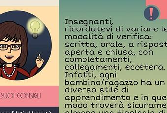 Se in classe ci sono ragazzi con Disturbi Specifici dell'Apprendimento, con disabilità o con altri Bisogni Educativi Speciali, ma anche in generale con tutti i ragazzi è necessario e corretto proporre modalità varie di verifica, non sempre la stessa, per arrivare a tutti gli stili di apprendimento dei bambini/ragazzi che abbiamo di fronte.
