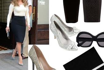 Una gonna a tubo a vita alta che copra un po’ il ginocchio, una maglia color panna o anche una camicia bianca taglio uomo, e una scarpa con il tacco. Il plateau non va più e torna la punta.