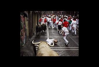 Finalmente oggi scopro che a Pamplona, in Spagna, sono finiti i festeggiamenti di San Firmino, durante i quali le persone corrono come delle ossesse senza motivo per le stradine della città inseguite da tori grossi e incazzati neri.Proprio oggi si è svolto l'ultimo "encierro" (il rituale si chiama così) ed il bollettino è di 11 feriti di cui 3 in gravissime condizioni.