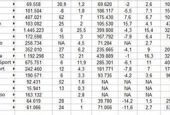 Se a commento dei dati Audiweb sono state mosse perplessità da più parti, personalmente resto decisamente più dubbioso sull’attendibilità dei dati Audipress che ho incluso nella tavola di sintesi che che preferisco, per questo motivo, astenermi dal commentare.