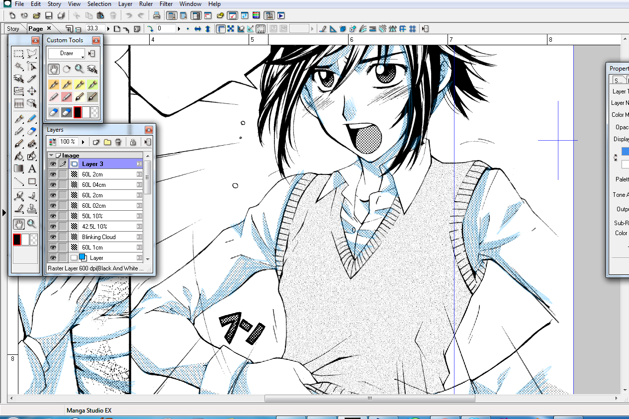 Cambiando discorso ho finito il remake della tavola del manga di Melissa, dopo aver terminato l'inchiostrazione l'ho passata in mangastudio, aggiustato il bilanciamento fra bianco e nero, e applicato i retini.