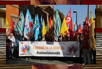 Ieri in diverse città si sono svolti cortei e organizzati presidi contro la legge 107 della “Buona Scuola” e per il rinnovo del contratto. Oltre Torino e Cagliari, a Roma il corteo organizzato dalle sigle Flc Cisl, Cisl Scuola, Uil Scuola, Snals, Confsal e Gilda Unams, partito da piazza della Repubblica, è stato bloccato dalla polizia ai Fori Imperiali, ma ha raggiunto piazza Santi Apostoli, come previsto dove si è conclusa al grido “Sciopero, sciopero, sciopero generale”.