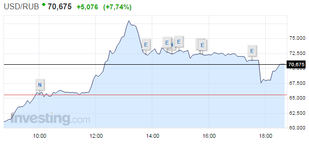 Societe Generale is the bank that has the biggest absolute exposure to Russia, at 25 billion euros ($31 billion), according to Citigroup Inc. analysts led by Kinner Lakhani. That’s equivalent to 62 percent of the Paris-based bank’s tangible equity. Raiffeisen has 15 billion euros at risk in Russia, almost twice its tangible equity, and it also has the biggest exposure to Ukraine, with 4.9 billion euros, according to Citigroup. UniCredit, the third European bank strongly invested in the formerSoviet Union, has 18 billion euros at stake in Russia, or 40 percent of its tangible book value, Citigroup said. The ruble plunged to 80 a dollar for the first time today as investors speculated Russia will announce capital controls after the largest interest-rate increase in 16 years failed to revive confidence in the currency. The currency sank as much as 19 percent to 80.10, before trading at 78 at 3:14 p.m. in Moscow. That was the biggest drop since 1998, the year Russia defaulted on its local debt.
