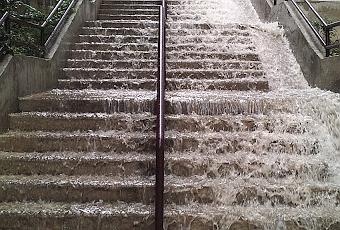 Per farvi un'idea basta guardare le foto: quello che vedete non è un fiume o un torrente. Sono i gradini di fronte a casa nostra, cinque minuti fa!
