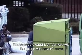 Cosa succede a Londra a chi ruba vestiti nei raccoglitori della Caritas? Un video che spiega l'importanza della videosorveglianza