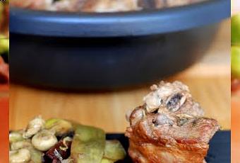 Erano anni che volevo comprarmi un Tajine, la tipica pentola della cucina magrebina e nord africana, il suo coperchio a forma conica mi ha sempre attirato così come la sua capacità di cuocere a fiamma dolce mantenendo all'interno tutti i sapori e profumi, proprio grazie al suo coperchio. L'ho scoperto durante alcune trassferte di lavoro in marocco e ho girato spesso per cercare quello più adatto alla piccola casa, poi finalmente sono entrato in possesso di questo bellissimo tajine le creuset, la sua particolarità, oltre alla alta qualità dei materiali e della fabbricazione, è di avere una base in ghisa che permette una cottura uniforme oltre a poter essere usata anche da sola.Detto fatto l'ho subito sperimentato con un ricetta che richiamasse la cucina nord Africana, non avendo a disposizione della carne di montone ( se qualcuno sa dove posso comprarla a Genova me lo faccia sapere) ho optato per un cosciotto di agnello, quindi ho scelto delle verdure in fin stagione come i carciofi e le fave, e poi dei tipici profumi che mi portassero alla mente il nord africa e il marocco, quindi spezie come il cumino e la cannella e poi la menta. La ricetta era pronta in un istante, basta solo tagliare le verdure e la carne, poi il resto lo fa il tajine, Il risultato? Un piatto veramente buono, morbidissimo, la carne e le verdure hanno assorbito i loro sapori e si sono arricchite dei profumi delle spezie, Ginevra, che di solito non mangia tantissima carne, ha fatto pure il bis!