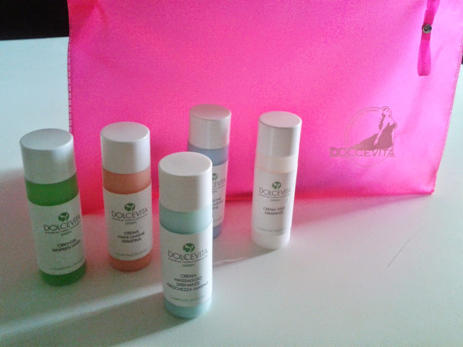 Nella nuova Linea Dolcevita Green puoi trovare tanti prodotti per la cura del viso e del corpo, a base di ingredienti naturali e delicati per la pelle, perché non contengono né parabeni né paraffina.Una Linea cosmetica completa che soddisfa le diverse tipologie della pelle e i diversi tipi di trattamento da svolgere nel centro estetico, con ingredienti selezionati e oli pregiati per risultati performanti elevati sempre nel rispetto della bellezza naturale.Inoltre i prodotti sono presentati in confezioni belle da vedere e pratiche da usare e sono ottimi non solo per l'uso in cabina ma anche come prodotto da rivendita.Questo è quello che l'azienda mi ha gentilmente spedito: