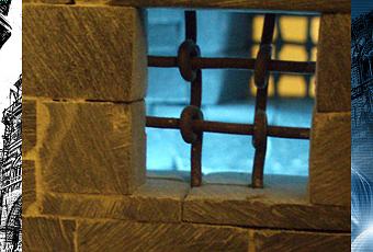 Il fissaggio definitivo degli architravi (limati in corrispondenza delle grate per permetterne l'inserimento), mi dà la profondità che dovranno avere le arcate di copertura delle finestre, il cui assemblaggio viene effettuato su strisce di cartone sagomato e senza troppe misurazioni.Una volta incollati i cunei tra loro rifinirò il profilo degli archi con le lime e con il Dremel, deformandoli se necessario finché la colla non sarà del tutto asciutta (in genere, nelle prime ore successive all'asciugatura, la colla mantiene un minimo di elasticità che può tornare molto utile).