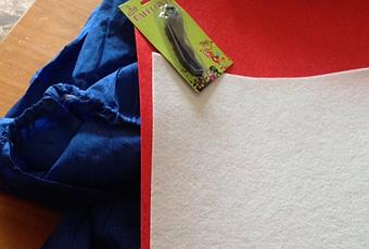 cosa vi occorre:del feltro bianco e del feltro rossodella stoffa blubaffetti fintibomboletta spray giallocolla a caldoforbici macchina da cucine