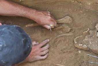 Risalenti tra il 450 e il 350 a.C. vi erano anche questi scheletri di un cane e di una pecora o capra (Clément Feliu, Inrap)