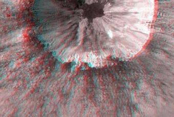 Alcuni grandi crateri d’impatto sono stati catturati dal Lunar Reconnaissance Orbiter Camera a bordo del Lunar Reconnaissance Orbiter (LRO) e successivamente si sono ottenute delle immagini in 3D che danno l’idea della profondità. Questa fotografia qui sopra in 3D (che è meglio osservarla con gli opportuni occhiali per coglierne la sua bellezza) mostra un cratere d’impatto giovane sulla superficie lunare a 17.682°S, 144.408°E, a ovest del cratere Isaev. Il cratere ha una morfologia estremamente complessa.