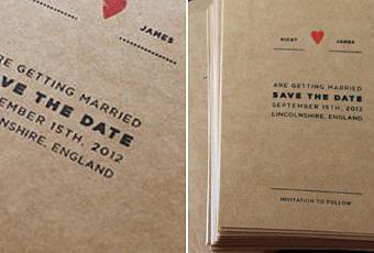 Ecco la semplicità che che mi conquista: un save the date stampato a due colori su carta kraft con l'ausilio di una piccola Gocco. Le buste, scelte dello stesso materiale, completano questa spedizione che partirà dalla lontana Australia con largo anticipo sul matrimonio.