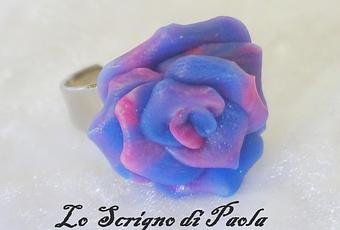 Ciaoo!! Oggi ho pubblicato un anello a forma di rosa, come potete notare e’ un colore un po’ particolare. Ho voluto provare a miscelare un rosa leggermente acceso, con un misto di un blu e una punta di grigio, il risultato secondo me e’ carino..nella foto il colore viene alterato. L’ anello e’ regolabile e la rosa e’ di 2 cm di diametro, quindi essendo piccola rimane delicata.