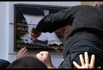 I manifestanti, un centinaio circa e riuniti attorno alla figura del Presidente del comitato per la difesa di Vukovar Tomislav Josić, si sono presentati la mattina di lunedì 2 settembre sulla piazza principale della città con l’intento di rimuovere a colpi di martello le insegne recanti la trascrizione cirillica all’ingresso degli edifici pubblici dell’agenzia delle entrate e della stazione di polizia.