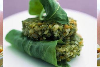 frullatene la metà con gli spinaci la cipolla tritata e le erbe aromatiche incorporatevi le carote grattugiate l'orzo rimasto sale e una macinata di pepe aggiungete 2 cucchiai di olio extravergine e mescolate foderate una teglia con carta da forno e posatevi un cilindro e ripetete l'operazione fino a finire l'impasto