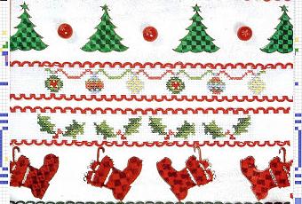 Un bel ricamo a punto croce per festeggiare con gioia il Natale. Ci sono gli addobbi e gli alberi di Natale, le coroncine, i fiocchi e i cuoricini colorati, e tutti gli schemi sono facilissimi e velocissima da realizzare