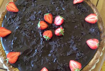 Verso la ganache sulla crostata con la ricotta ormai fredda e la livello bene