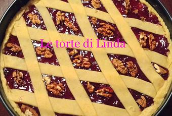 Stendete la pasta restante, ricavate delle striscioline e coprite la crostata.Sgusciate le noci e distribuite i gherigli sulla crostata.