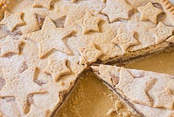 Posizionare con delicatezza il disco sulla crema, pizzicare bene i bordi con una forchetta e riposizionare, in modo irregolare, le stelle su vari “buchi”della copertura così da far intravedere il ripieno. In originale la crostata andava decorata con i biscotti cotti a parte e successivamente appoggiati sopra, io ho fatto così perchè temevo che la crema sarebbe uscita dai buchi e invece… non è successo! Vabbè sarà per la prossima volta!