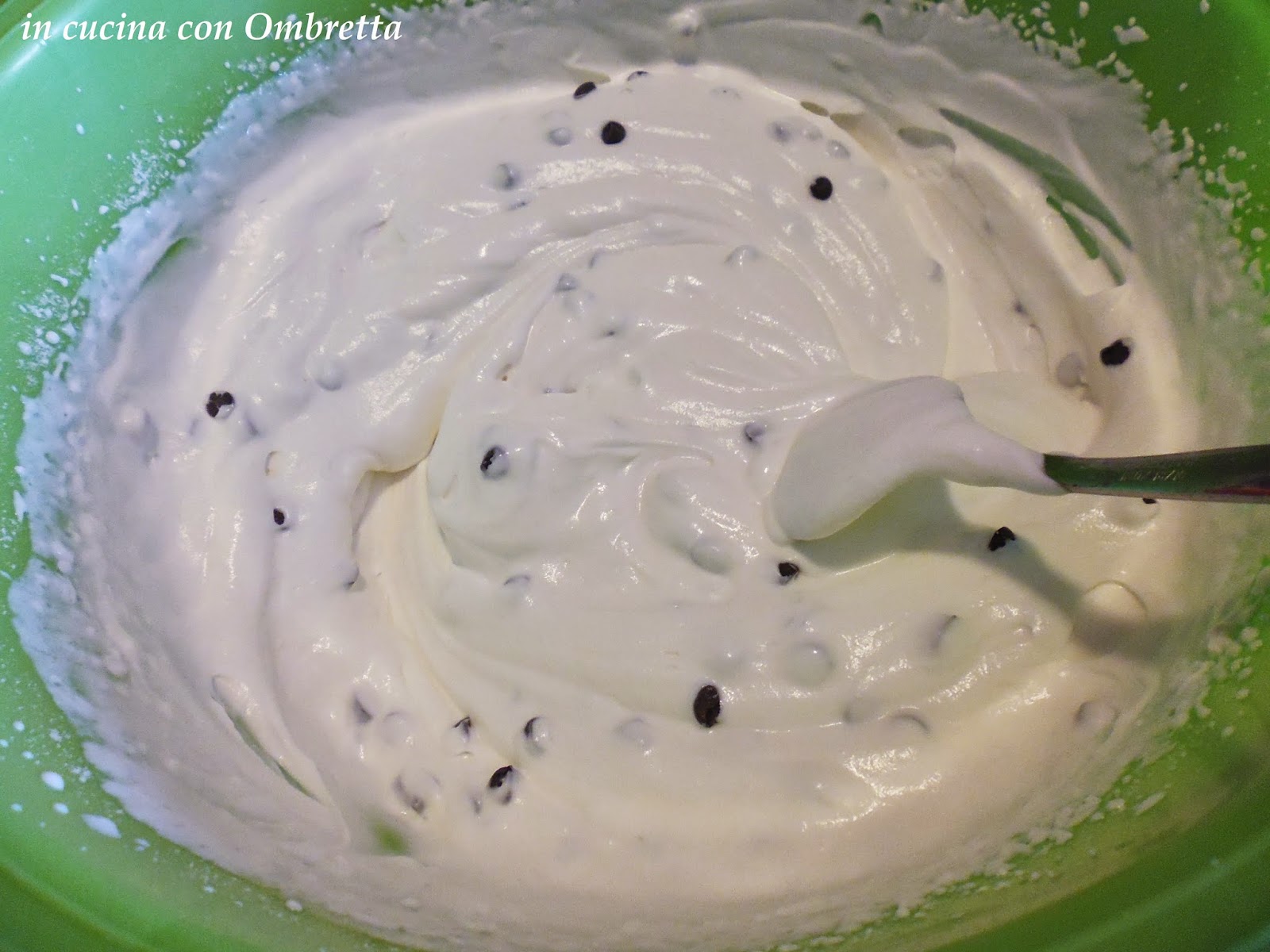 Amalgamate tutti gli ingredienti con uno sbattitore elettrico fino a quando non risulterà un po densa e per ultimo unite le gocce di cioccolato,riponete in frigo.