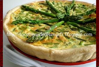 Preleviamo la pasta dal frigo e stendiamola sul piano infarinato, imburriamo la tortiera e infariniamola, quindi foderiamola con la pasta ribaltando all' interno quella in eccesso; bucherelliamo il fondo con una forchetta, distribuiamo sopra l' emmentaler a lamelle (io mi sono aiutato con il pelapatate) poi sistemiamo in maniera uniforme gli asparagi.