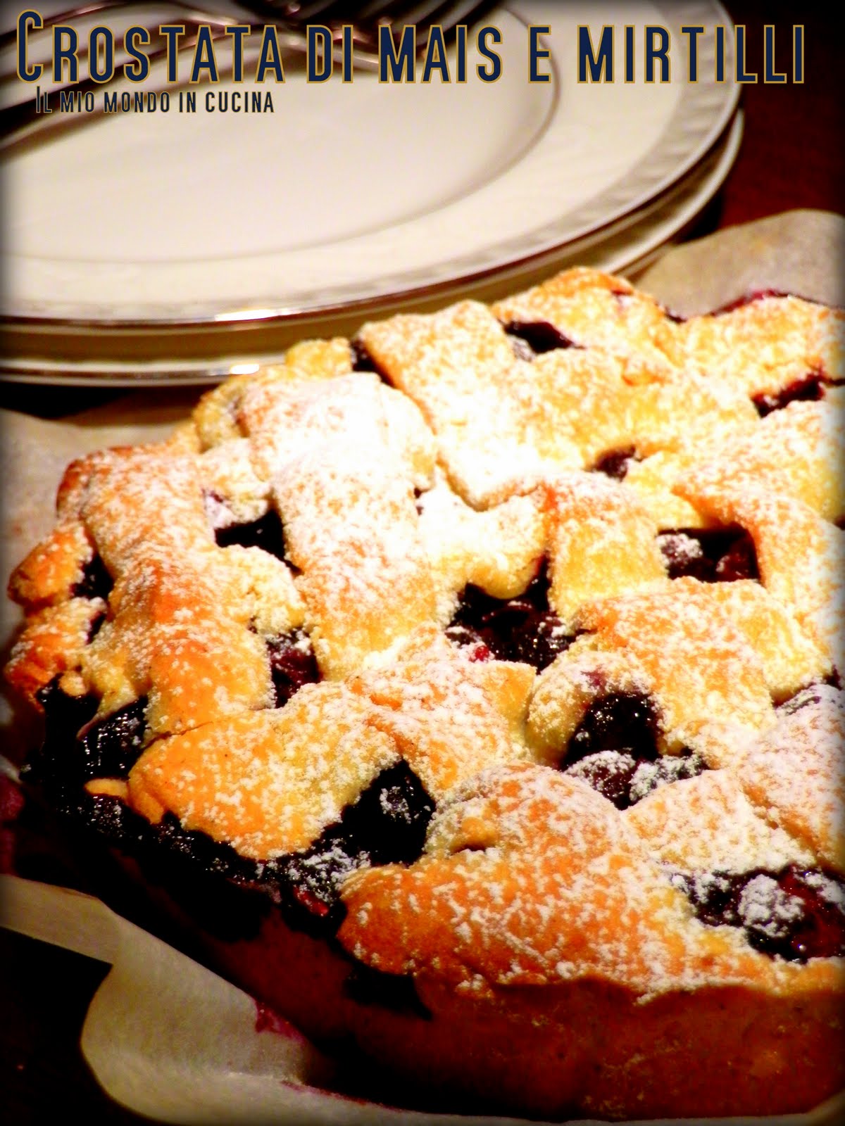 Ingredienti per 2 persone : 200 g di mirtilli freschi - 50 gr. farina gialla fumetto - 60 gr. farina 00 - 60 gr. zucchero - un pizzico di lievito in polvere vanigliato - 50 gr. burro morbido – ½ uovo (30 gr.) – 2 cucchiai di biscotti secchi sbriciolati - sale – menta secca in foglie – un pizzico di vaniglia in polvere – poca buccia di limone grattugiata