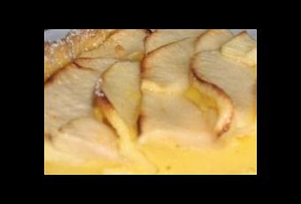 Nel frattempo tagliate le mele a fettine e preparate la crema pasticcera in questo modo: prendete 1/2 litro di latte e fatelo sobbollire dentro una casseruola, a parte in una terrina sbattete i tuorli delle uova insieme a 150 gr zucchero, fino a quando otterete una crema soffice. A questo punto unite il latte ( 1/3 circa di quello che avete sobbollito) a poco a poco e la farina setacciata.