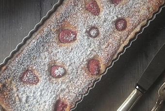 Trascorso tale tempo togliete dal frigorifero crema e impasto, versate la crema nel guscio, aggiungete 100-150g di lamponi.