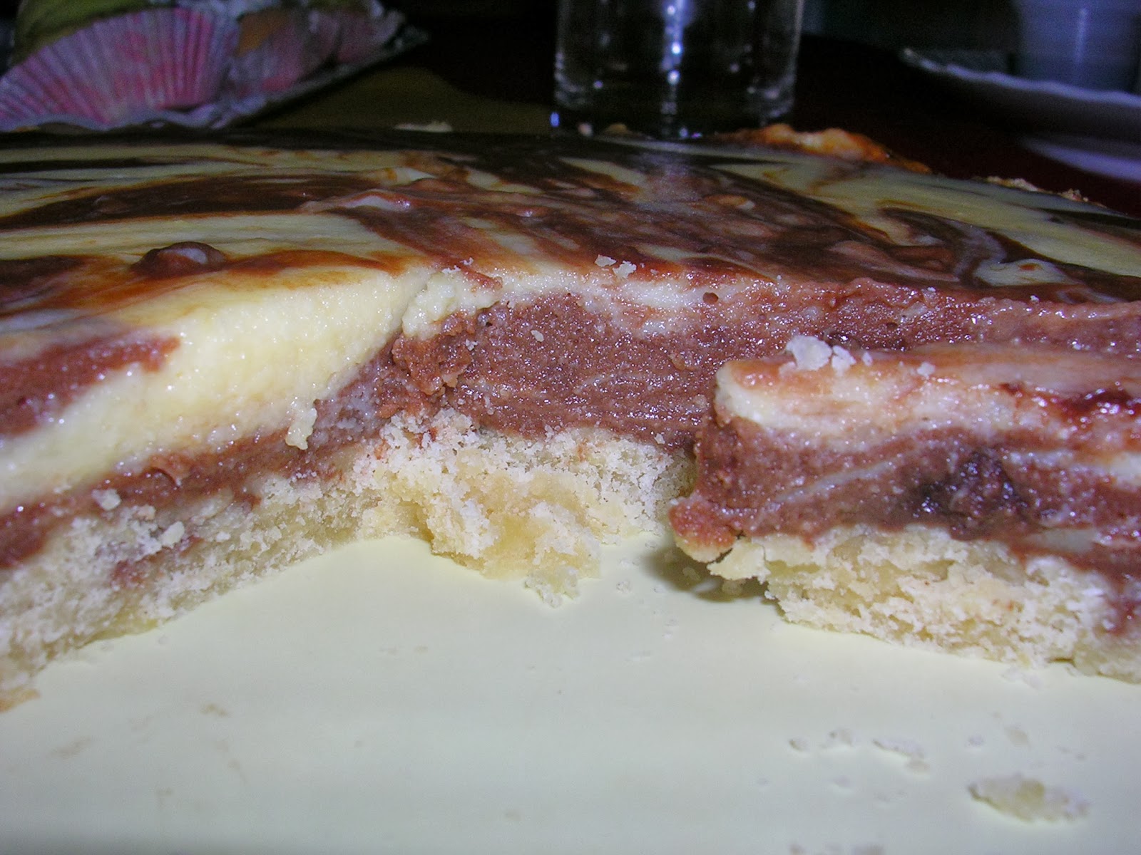 Riportare la crema sul fuoco fino a farla raddensare, aggiungere poi la gelatina (precedentemente ammollata) e mescolare finché non sarà completamente sciolta. Dividere la crema in due parti, ad una delle quali andrà unita la nutella o cacao amaro. Quando le creme avranno raggiunto la temperatura ambiente unirvi la panna montata. Versare le creme, sulla crostata, alternandole e mescolare con un bastoncino creando dei disegni. Tenere la torta in frigo, per almeno 2 ore, fino al momento di servire.