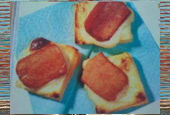 Riscaldare il forno a 200 gradi. Privare le fette di pancarré della crosta, quindi spalmarle con il burro e la senape. Adagiare su ogni fetta di pancarré una di formaggio, poi tagliare le fette in 4, ricavando da ognuna 4 crostini quadrati. Tagliare i würstel a metà nel senso della lunghezza e poi nell’altro senso; sistemarne 1 pezzetto su ogni crostino poi metterli sulla placca del forno e cuocerli per 5 minuti circa, finché il formaggio sarà fuso. Servire subito.