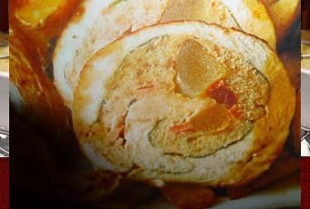 prendete il tacchino e spolverizzatelo con il sale e pepe all'interno il trito di erbe e parte delle castagne umettate con riccioli di struttoarrotolatelo chiudetelo con cotone