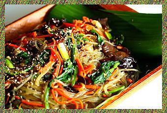 il chap'chae sono spaghettini di amido ricchi di carne e verdure tipico piatto unico della cucina coreana completo