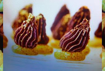 inzuppate gli amaretti nel brandy versateci sopra il composto con una tasca da pasticciere mettete i pasticcini in frigo per 1 ora