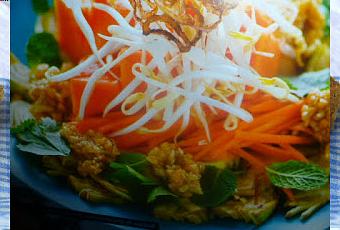 questa ricetta deliziosa appartiene alla tradizione vietnamita dove viene preparata con il fiore di banano che ne gusto richiama vagamente il sapore dei carciofi se non riuscite a trovare i fiori di banano potete sostituirli con i carciofi