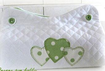 Ho decorato con dei cuoricini in apliqué a macchina e dei bottoncini a cuore bianchi, sui quali ho ne ho inseriti altri rotondi e verdi.