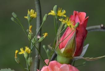 Per il mio mazzetto: rosa Cubana, Rosa Rubiginosa, bocciolo di rosa Barni (ahimè non so ancora il nome), fragoline matte e fiorellini gialli.