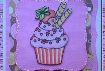 Per realizzare la card ho utilizzato un bazzil rosa ritagliato con le spellbinders, della carta glitterata ed infine un timbro digitale colorato con i pastelli acquarellabili…per dare un tocco in più ho messo il glitter gel rosa tutto intorno al bordo della mattatura del timbro.