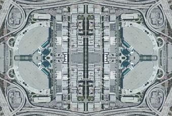 Lo strumento principale di Hanauer è Google Earth da cui vengono prese delle vedute aeree da sottoporre ad un gioco di specchi, con riflessione orizzontale e verticale, creando un risultato particolare che viene stampato su base in poliestere con colori resistenti all’acqua. Il tutto per creare oggetti d’arredamento dal tocco futuristico.
