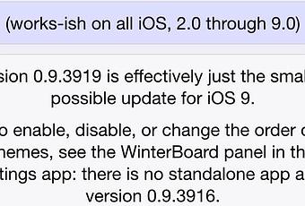 Su Cydia il noto tweak Winterboard per personalizzare l’intera grafica del nostro iDevice si è riaggiornato alla vers. 0.9.3919 e adesso supporta anche iOS 9.x.x.
