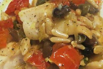 Il pesce persico ha carni sode e delicate e si presta bene ad essere cucinato in padella. Qui è proposto a bocconcini, accompagnato da pomodori, capperi, pinoli e olive e scalogno. Un secondo piatto leggero e profumato, da servire per esempio dopo un piatto di Spaghetti agli scampi, lime e granella di mandorle.